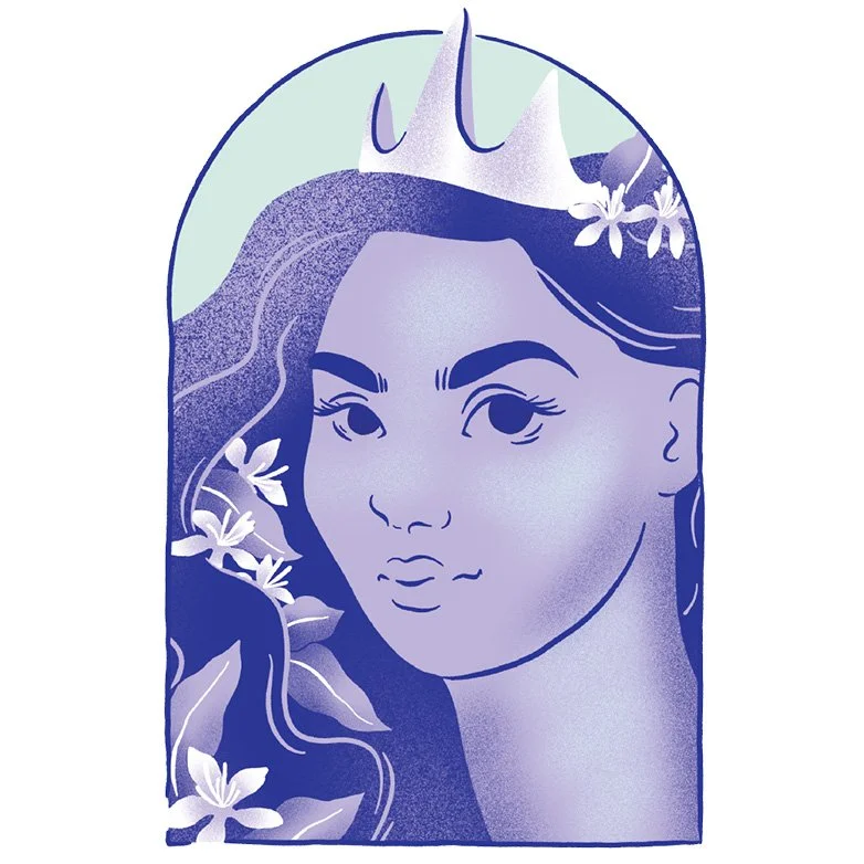A rich tribute to an iconic symbol, the siren looks on with an understanding of her own power. The coffee plants in her hair represent her constant growth and nurturing nature. Her crown reaches quietly out of the frame to say she is more than her title. She who braves the uncharted waters, unafraid of any storm.