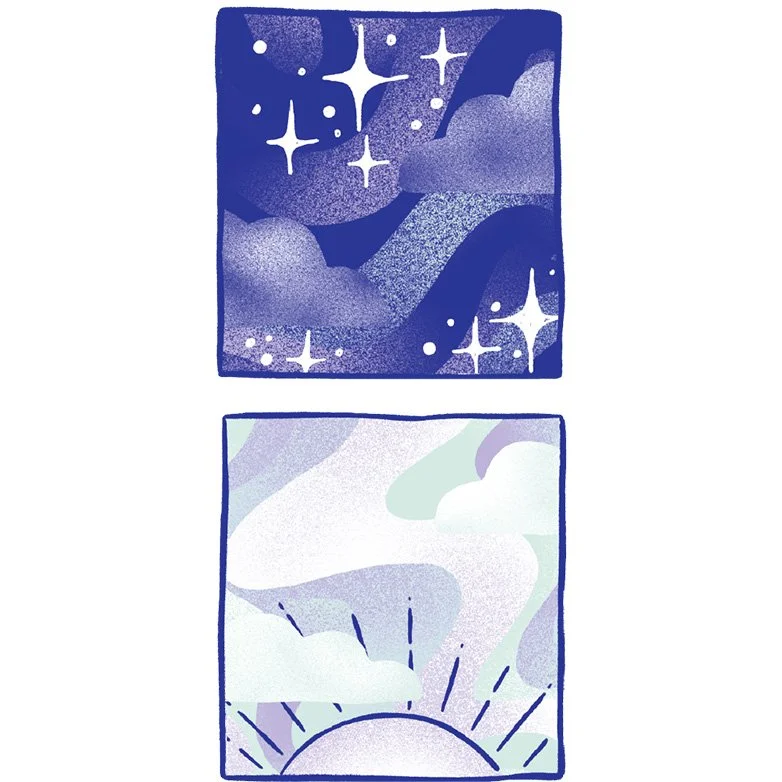 Visuals are sophisticated and modern, but there’s also a sense of playful openness with color pairings and fluid patterns. Humanity is a key part of the Starbucks brand, so I’ve included touches of humanity and nature within the illustration. The team’s intention was to capture moments of cosmically introspective self reflection, moments of community, and a connection to growth & coffee.